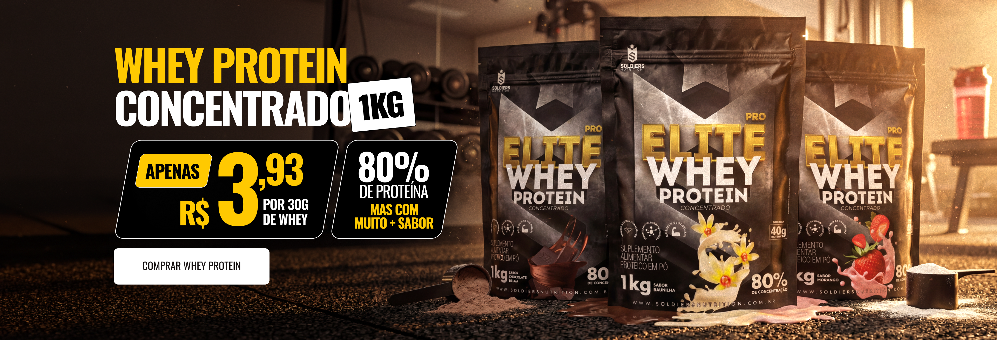 Preço normal R$ 137,56Preço normalR$ 199,90Preço promocional R$ 137,56no Pixcom 5% de descontoR$ 199,90R$ 137,56 até 3x de sem jurosWhey Protein Elite Pro Concentrado 80% Baunilha 1Kg - Soldiers Nutrition