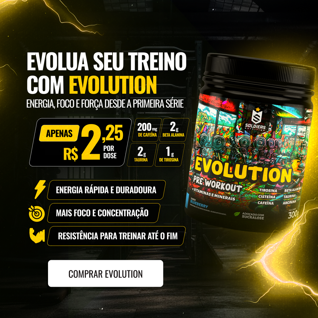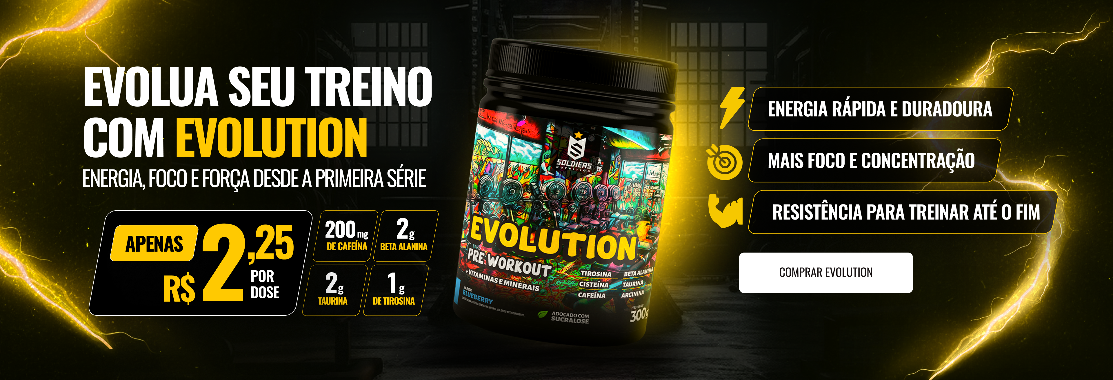 Preço normal R$ 47,25Preço normalR$ 78,90Preço promocional R$ 47,25no Pixcom 5% de descontoR$ 78,90R$ 47,25 até 3x de sem jurosPré-Treino Evolution Limonada Suiça 300g - Soldiers Nutrition