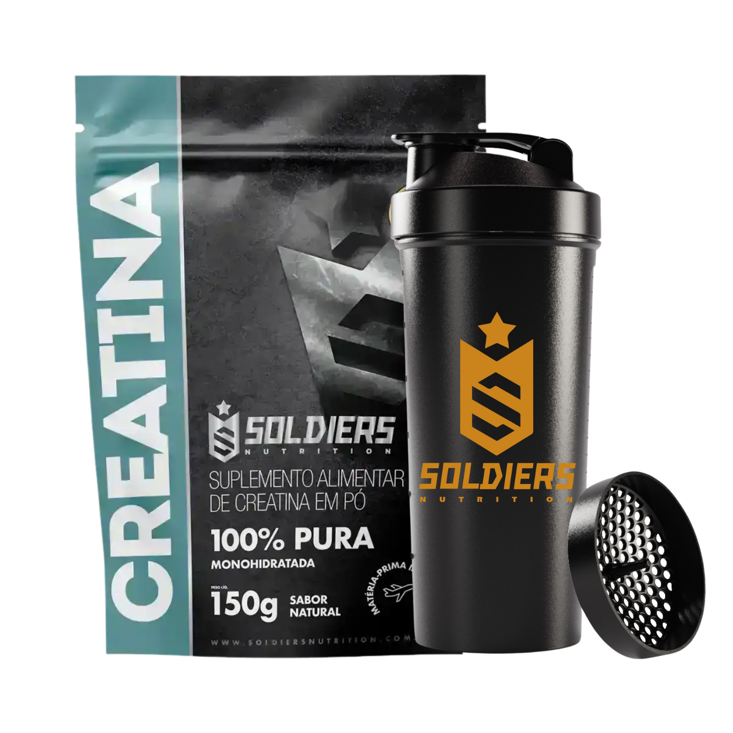 Kit: Creatina 150g + Coqueteleira Slim - Soldiers Nutrition
