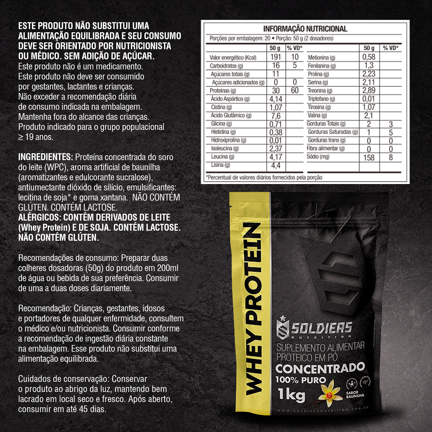 Whey Protein Concentrado 60% 1kg - Soldiers Nutrition