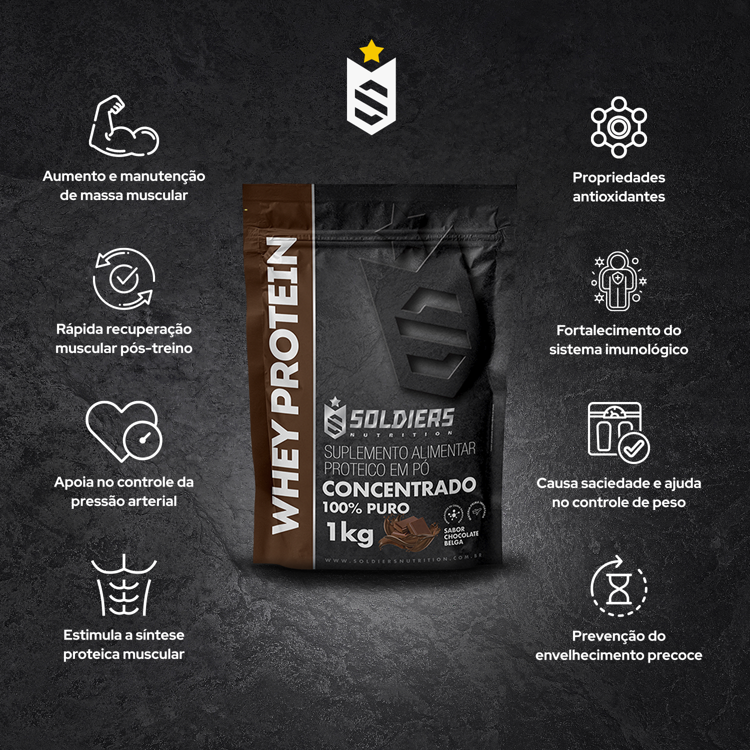 Whey Protein Concentrado Chocolate Belga 1kg - Soldiers Nutrition