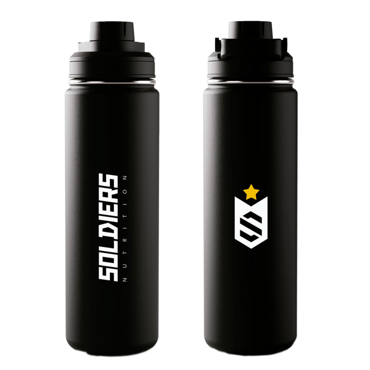 A nova garrafa térmica Soldiers Nutrition é sua nova companheira para a academia e dia a dia. Com capacidade de 700ml, ela é ideal para manter sua bebida sempre fresca com você.