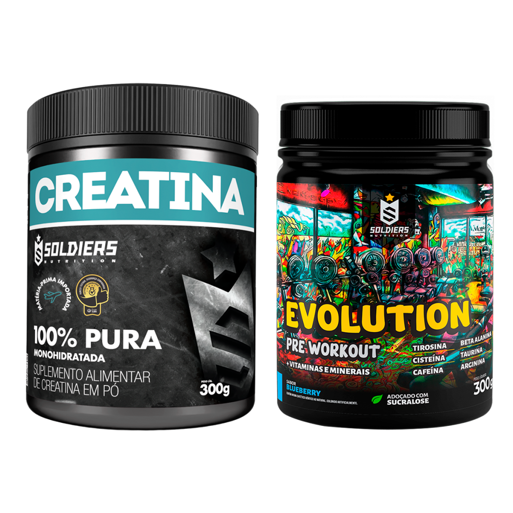 Kit: Creatina Monohidratada Pote 300g 100% Pura + Pré Treino Evolution 300g - Soldiers Nutrition