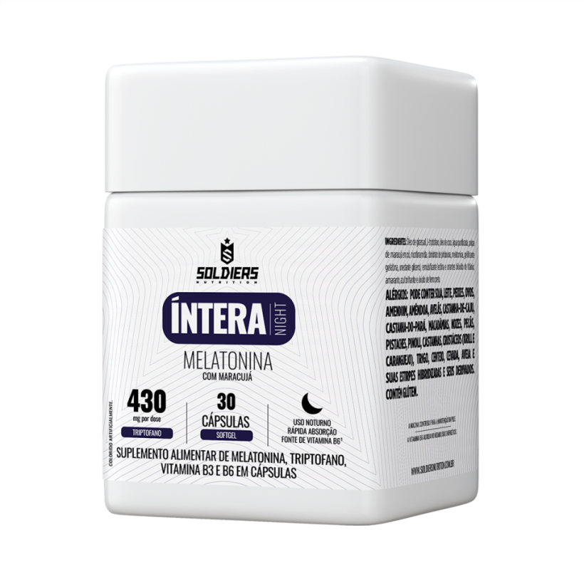 INGREDIENTES: Óleo de girassol, L-triptofano, óleo de coco, água purificada, polpa de maracujá em pó, nicotinamida, cloridrato de piridoxina, melatonina, gelificante gelatina, umectante glicerol, emulsificante lecitina e corantes dióxido de