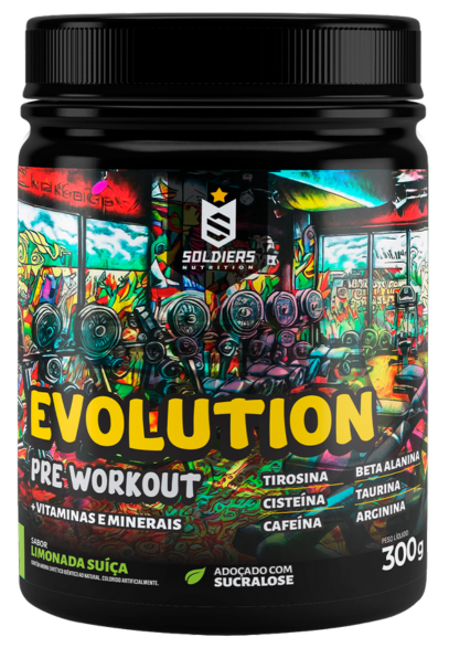 O pré-treino Evolution da Soldiers Nutrition proporciona toda a força que o corpo precisa para elevar o desempenho físico e mental nos treinos. O grande diferencial está na composição: o pré-treino Evolution da Soldiers Nutrition possui vitaminas como B3, B6 e B12, minerais como Magnésio, Boro e Zinco, além de cisteína, beta-alanina, arginina, taurina, tirosina e cafeína. O suplemento foi cuidadosamente formulado para fornecer a dose ideal de cada componente para proporcionar segurança no consumo e efeitos visíveis.