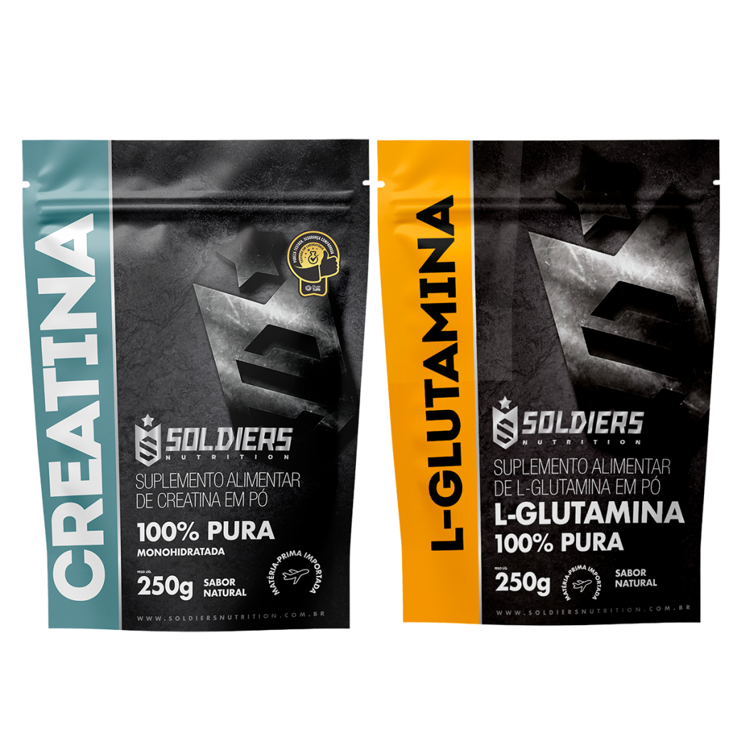 Kit: Creatina Monohidratada 250g + Glutamina 250g - 100% Pura Importada - Soldiers Nutrition