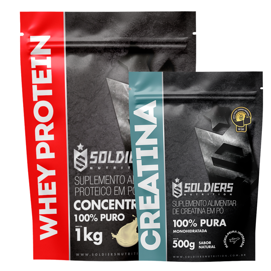 Kit: Whey Protein Concentrado 1Kg + Creatina Monohidratada 500g - 100% Importado - Soldiers Nutrition