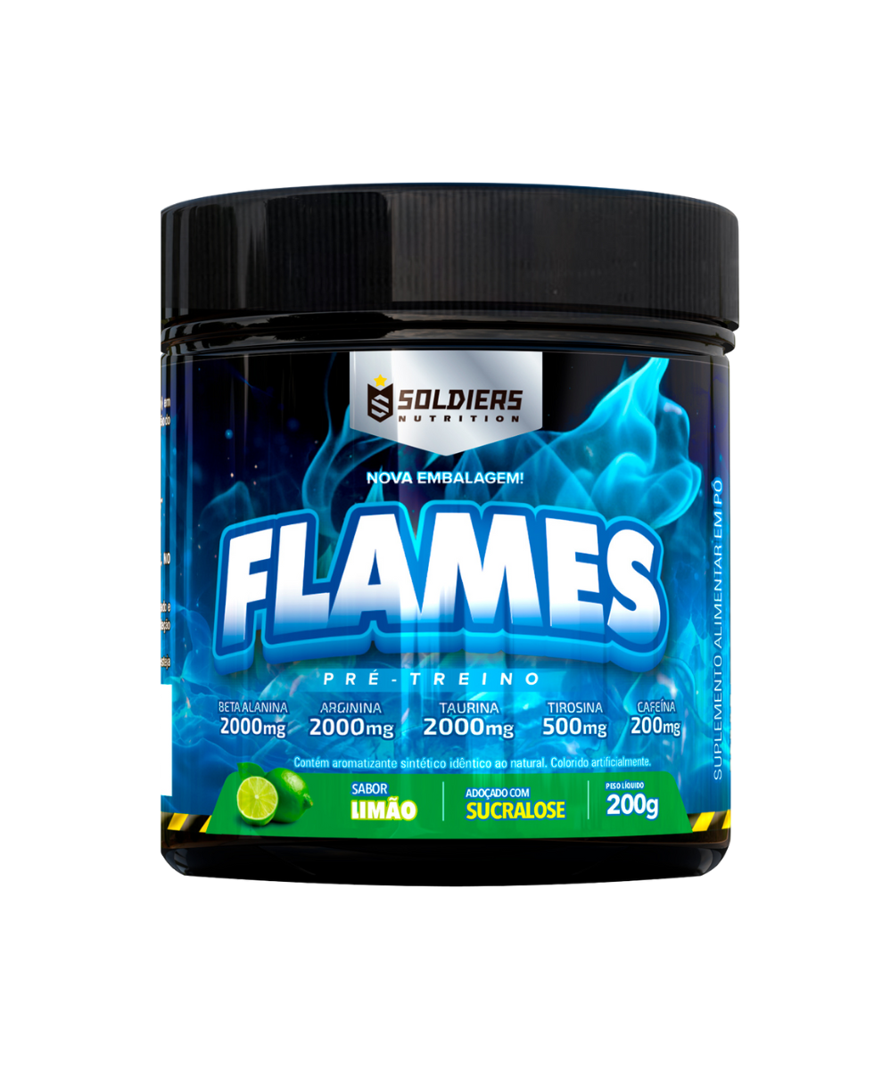 Com Beta Alanina, Arginina, Taurina, Tirosina e Cafeína na composição, o pré-treino Flames da Soldiers Nutrition reúne nutrientes de alta qualidade para te ajudar a adquirir a performance desejada, com mais foco e resistência. Além disso, o suplemento foi cuidadosamente formulado para fornecer a dose ideal de cada componente, proporcionando segurança no consumo e efeitos visíveis.