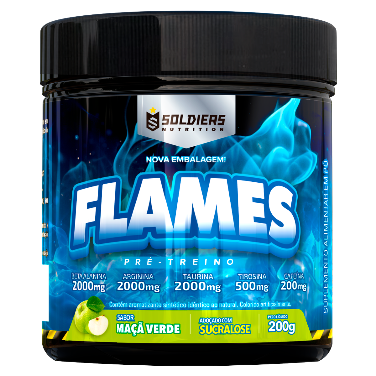 O pré-treino Flames da Soldiers Nutrition é um suplemento que proporciona força e energia para treinos intensos. Desenvolvido com componentes poderosos, o suplemento possui um sabor aprimorado e agradável e melhora o desempenho físico e mental.